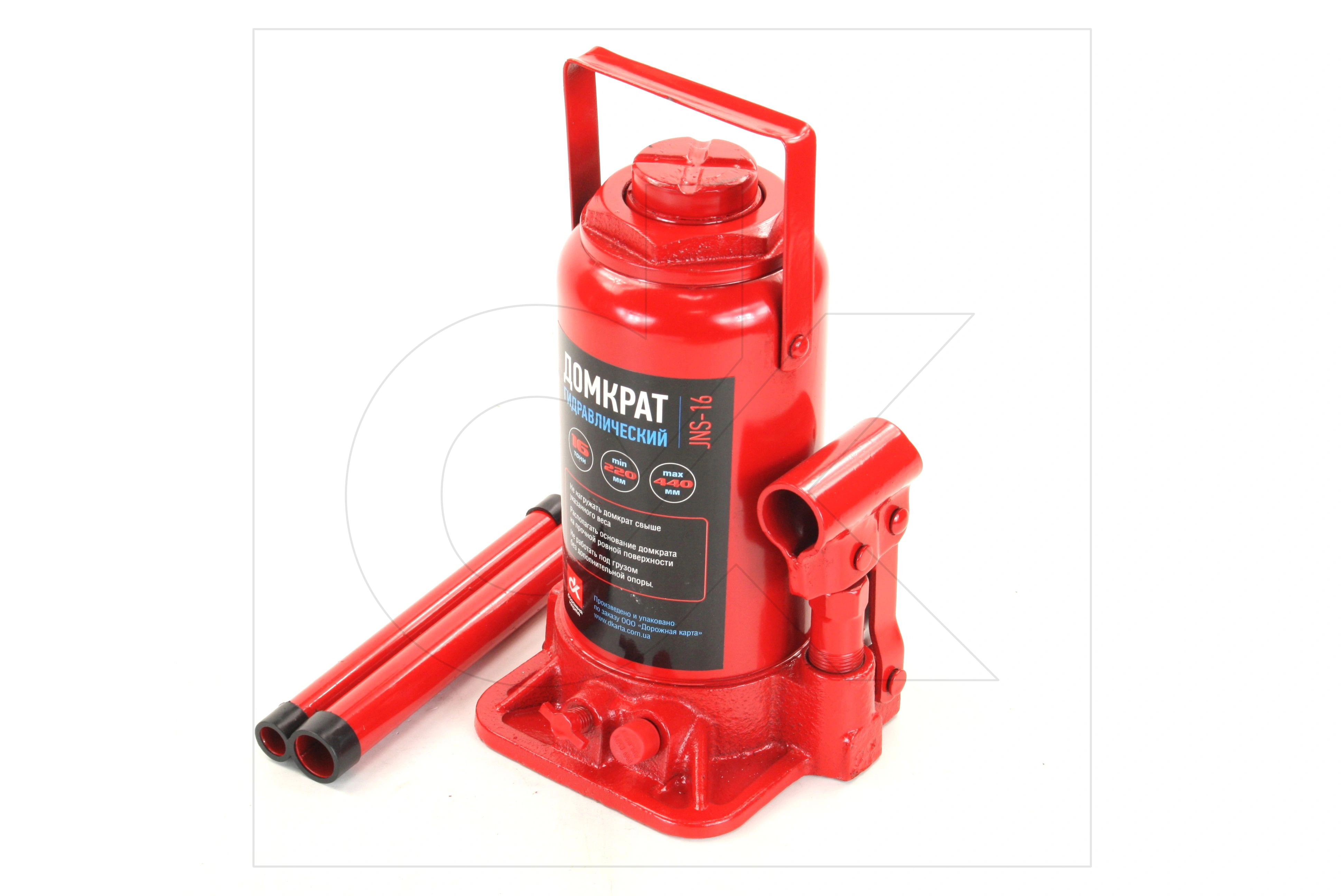 Домкрат 16т пляшковий, червоний H-220/420